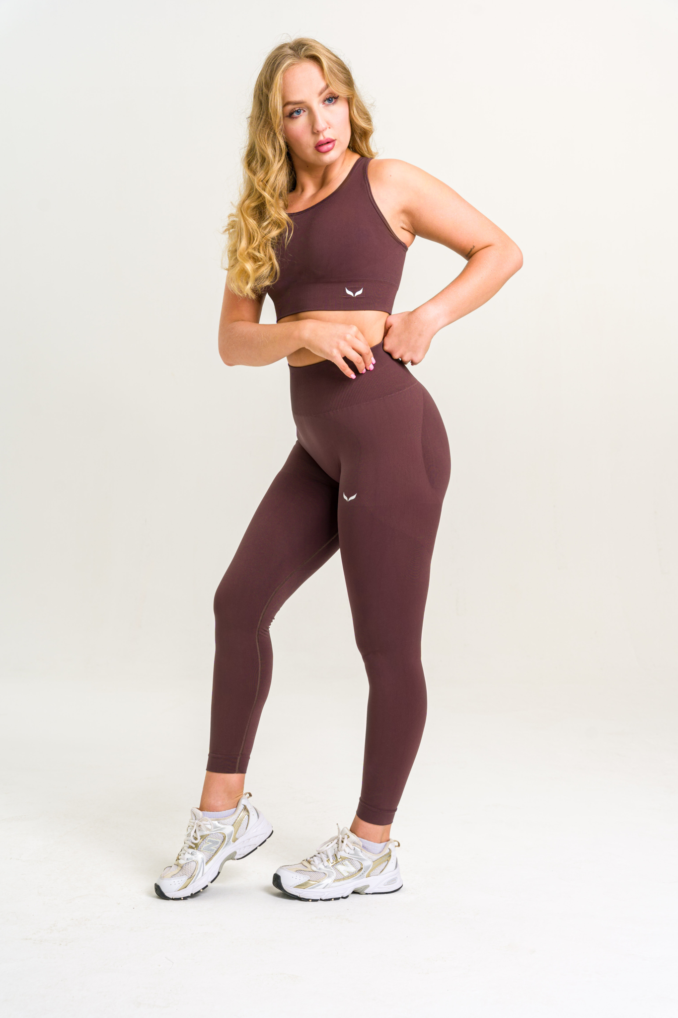 Brązowe legginsy bezszwowe push-up z technologią modelującą pośladki i talię. Idealne na siłownię, fitness, spacer i każdy dzień. (Ostatnie sztuki)