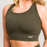 Bezszwowy top sportowy w kolorze Deep Khaki z elastycznym pasem i wyjmowanymi wkładkami. Oddychający, przylegający i dopasowany do kobiecej sylwetki. Styl, wygoda i wsparcie w jednej formie. Idealny na co dzień i do treningu. (Ostatnie sztuki)